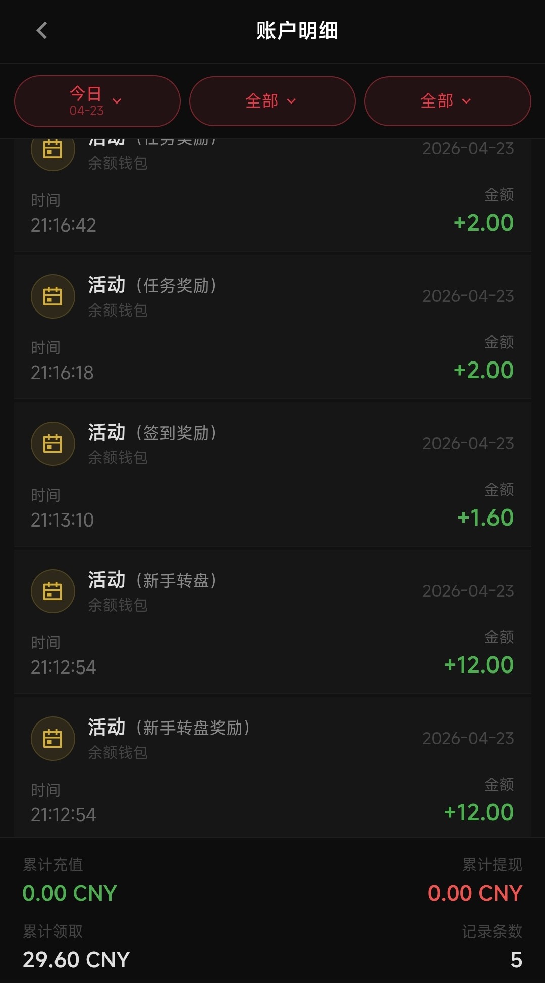 注册好后会有一个转盘弹窗出来,点击转动即可,优惠里有签到彩金跟新手任务彩金