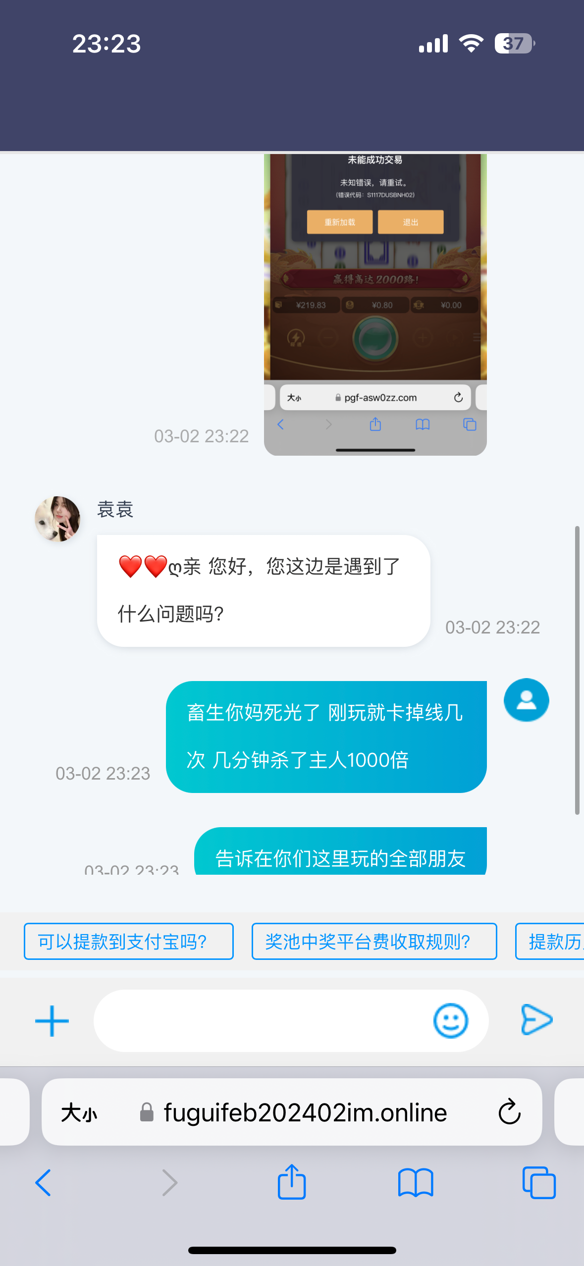 这畜生黑台各种封网络断线卡杀了一天 8毛摇麻将吃了主人7000倍 回来了11元钱 畜生的摇了7000倍回来不了一次免费 平时最多50倍