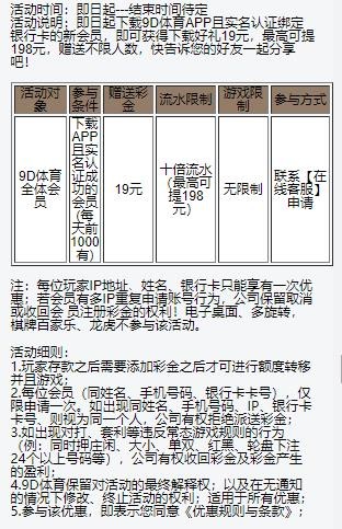 注册绑定手机号和银行卡送彩金19元,满足100元即可提款,最高198元,具体自测